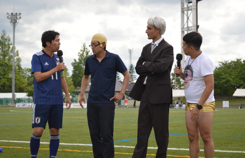 ゴールパフォーマンスで選手とハイタッチすることも!