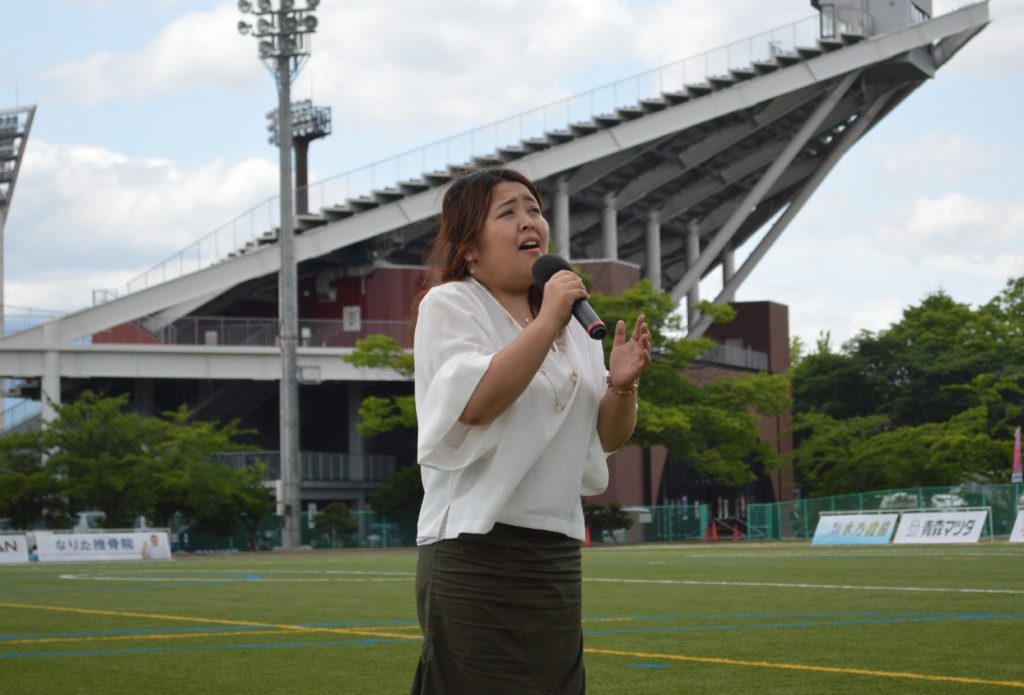ここで応援することで、選手と喜びや悲しみを共有し、一緒にブランデュー弘前を作り上げていくことができます。弘前を背負い、頑張る選手のためにも、応援したいと思っています。