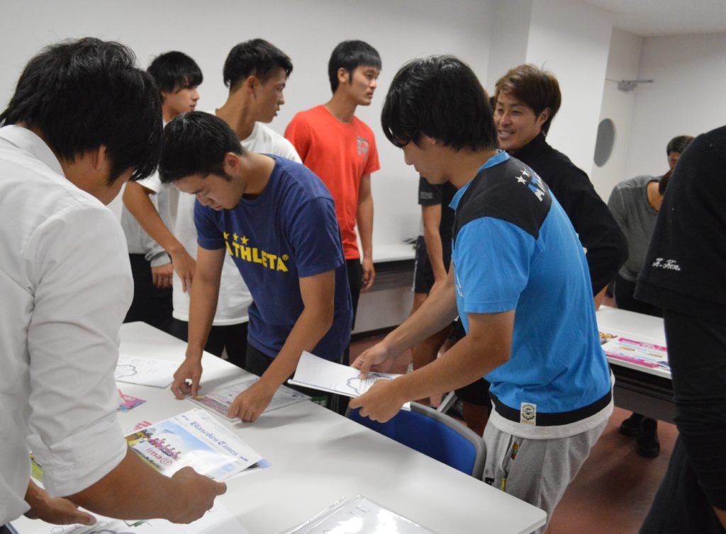 選手達が日頃の感謝を込めて封入作業を行いました。