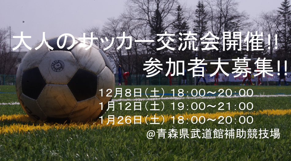 弘前からJリーグを目指す「ブランデュー弘前FC」が開催している「大人のサッカー交流会」の12月2019年1月開催日程が決定しましたのでお知らせします。