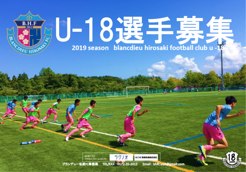ブランデュー弘前FC U-18(ユース・高校生年代)では、2019シーズンを共に活動してくれる新高校1年生を募集しています。自分自身の限界にチャレンジしたい、クラブの様々な活動を通して成長したい、そんな志のある新高校1年生の参加をお待ちしています。