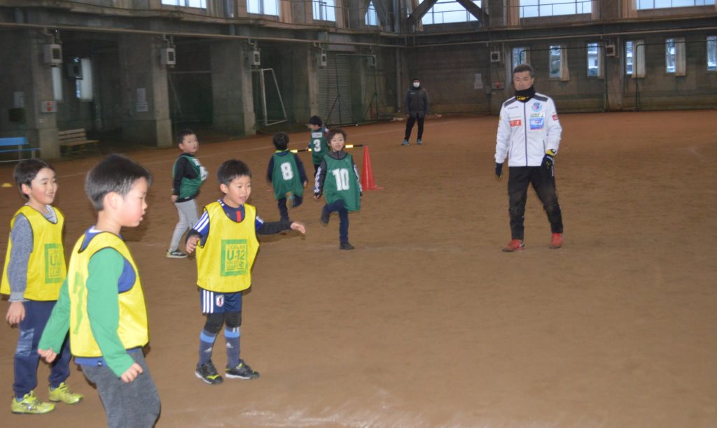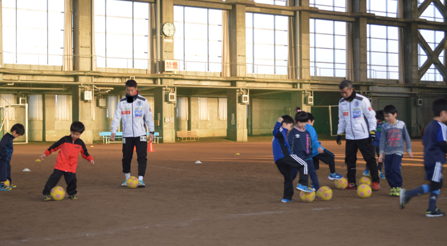 3/23(土)弘前克雪トレーニングセンターにて、玉城アカデミーコーチと姜選手が新一年生の子供たちににサッカー教室を実施いたしました。