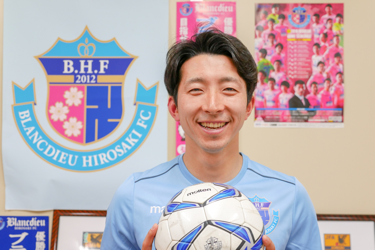 2018シーズンは東北リーグ1部初の優勝も、惜しくもJFL昇格まで届かなかったブランデュー弘前。悲願のJFL昇格に向けた2019シーズンを前に、キャプテンの濱中大選手にインタビュー。これまでの軌跡と2019シーズンについてお話をうかがいました。