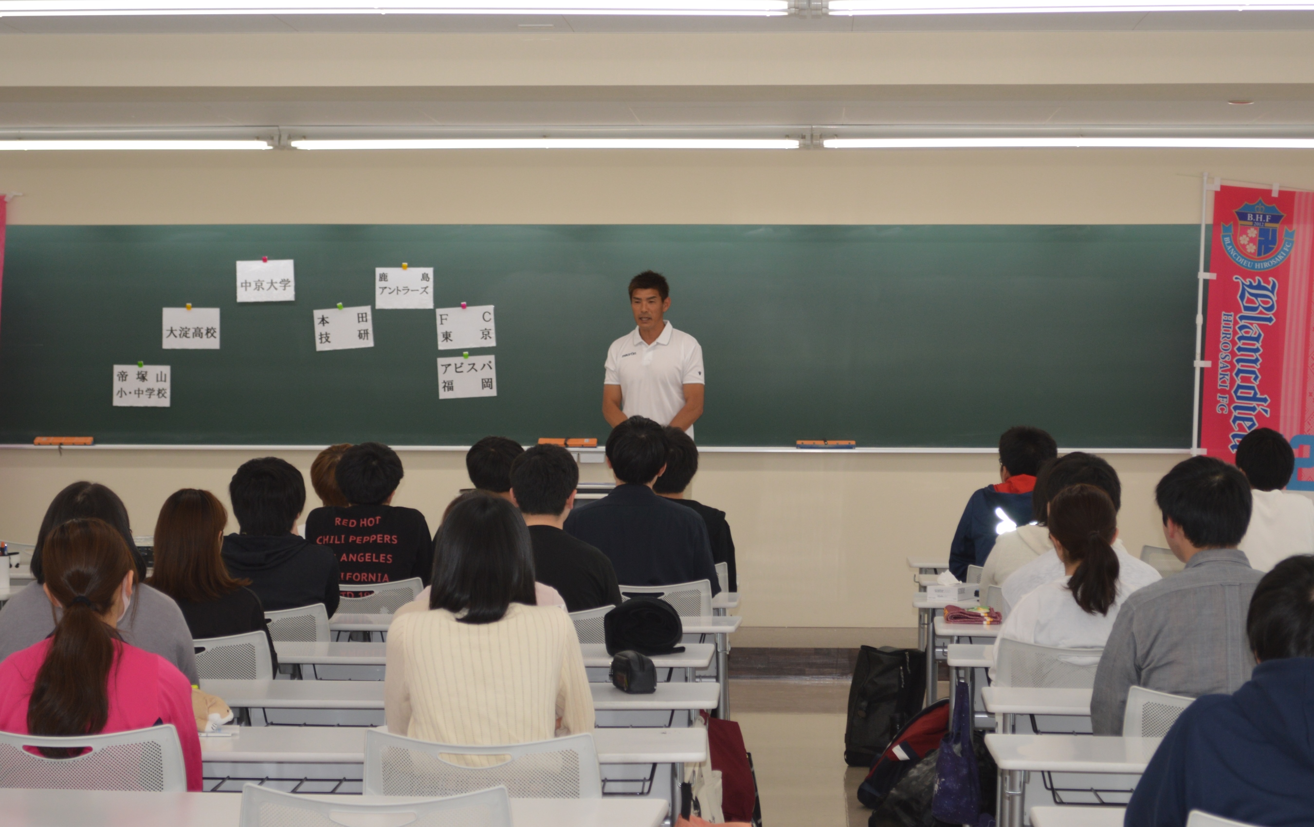 内藤監督は夢に向かって努力することの大切さを自身の経験を交えながら講演し、学生の皆様は熱心な様子で聴講いただいておりました。