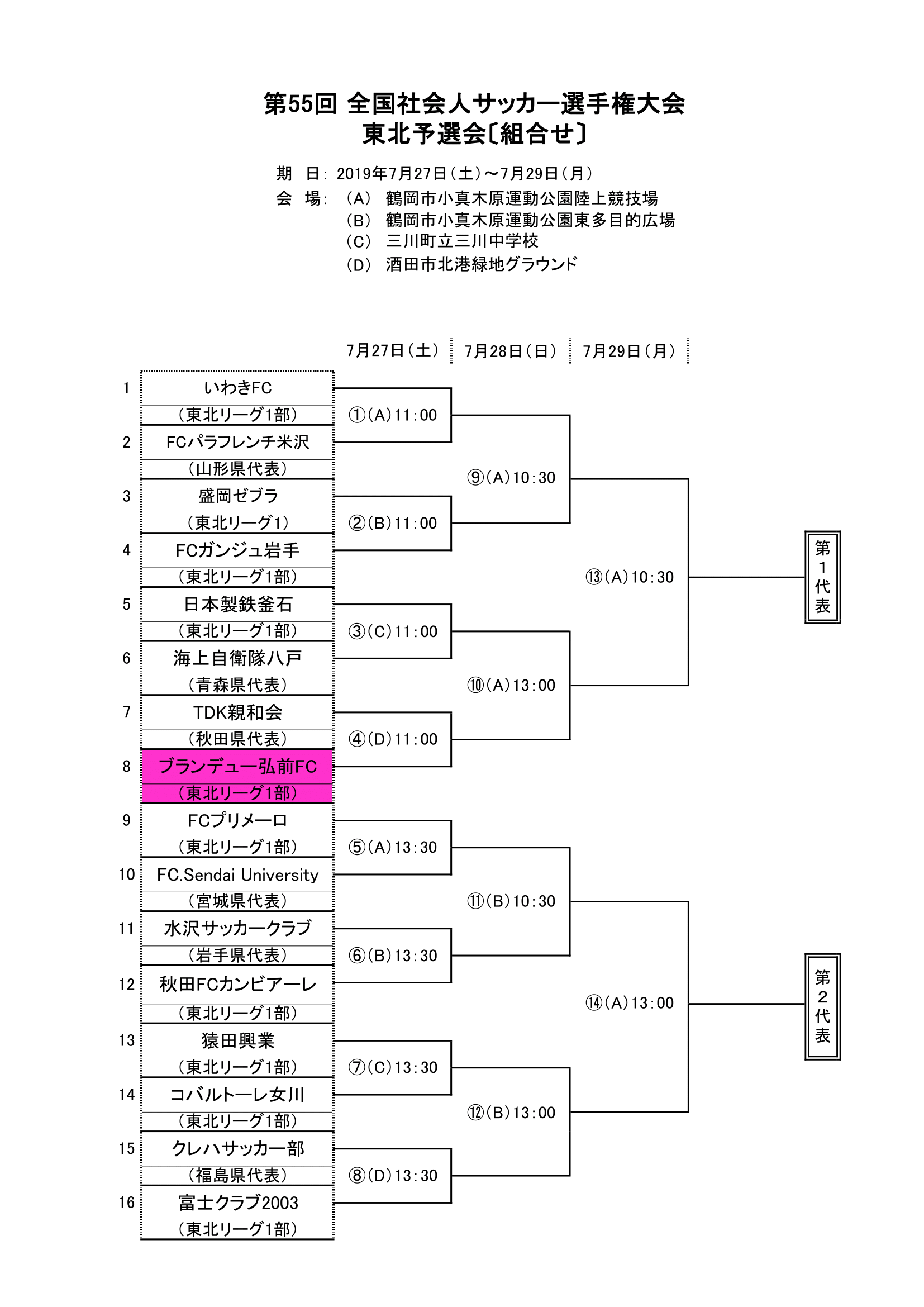 7月27日(土)~29日(月)に行われた「第55回全国社会人サッカー選手権大会東北予選会」の結果をお知らせいたします。
