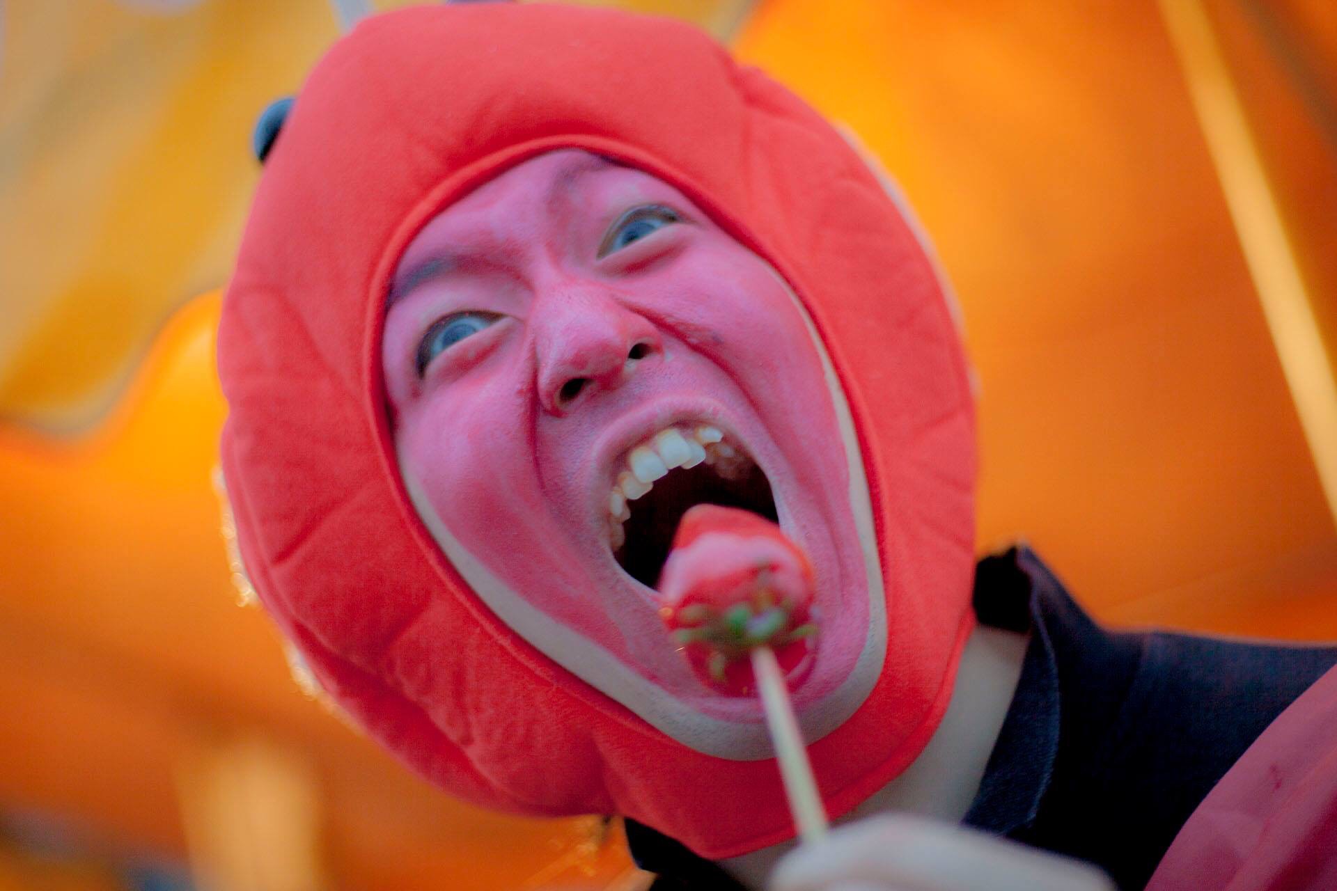 生キャラでお馴染みの「りんご飴マン」が数量限定で一口りんご飴を配布します!