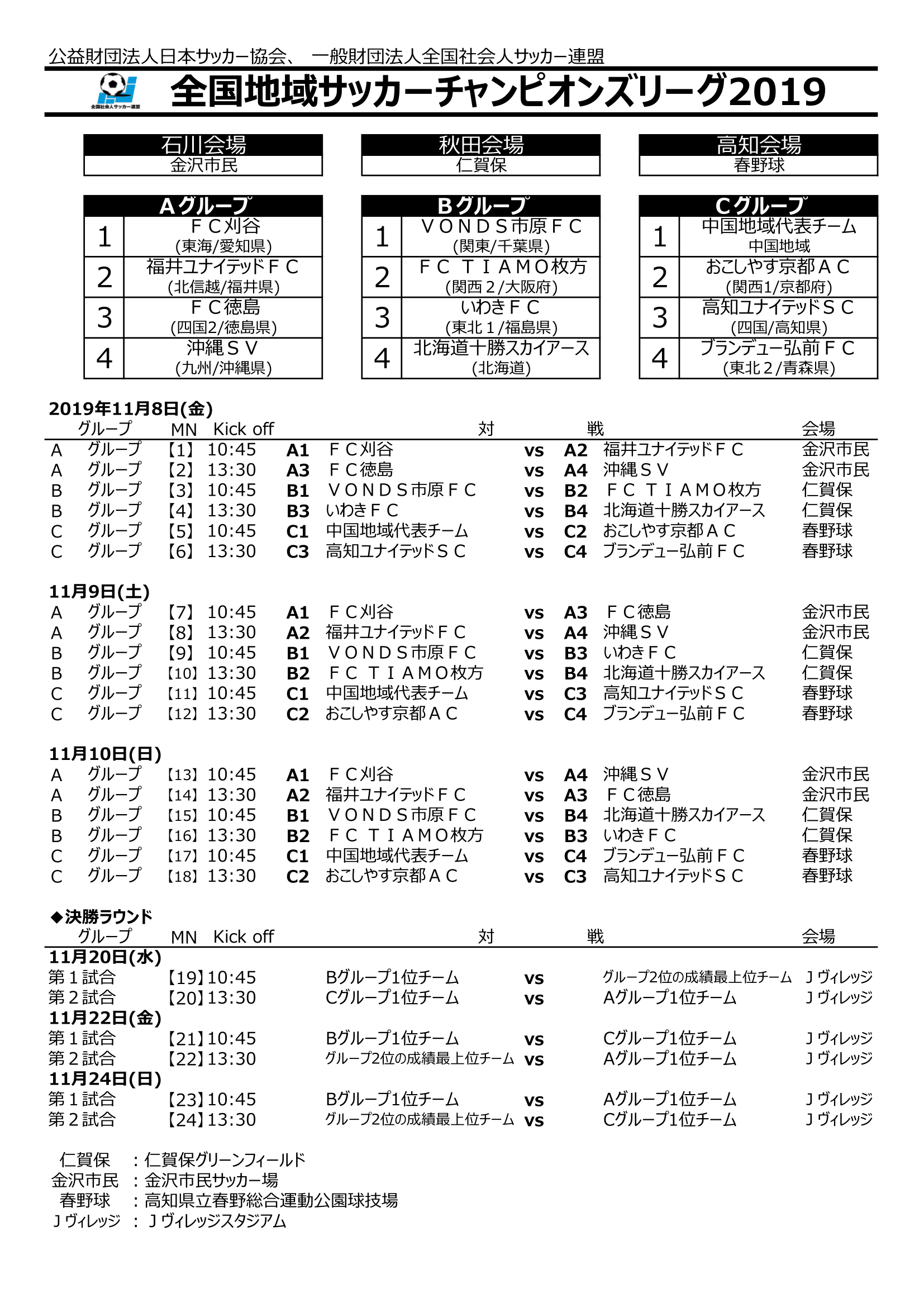 2019年11月10日(日)10:45キックオフ
