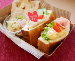 ・小野サン(ツナサンド)、ねもサン(たまごサンド)とミニサラダ、+フライドポテトをセットにした「サンドウィッチボックス」を特別販売!(¥600)