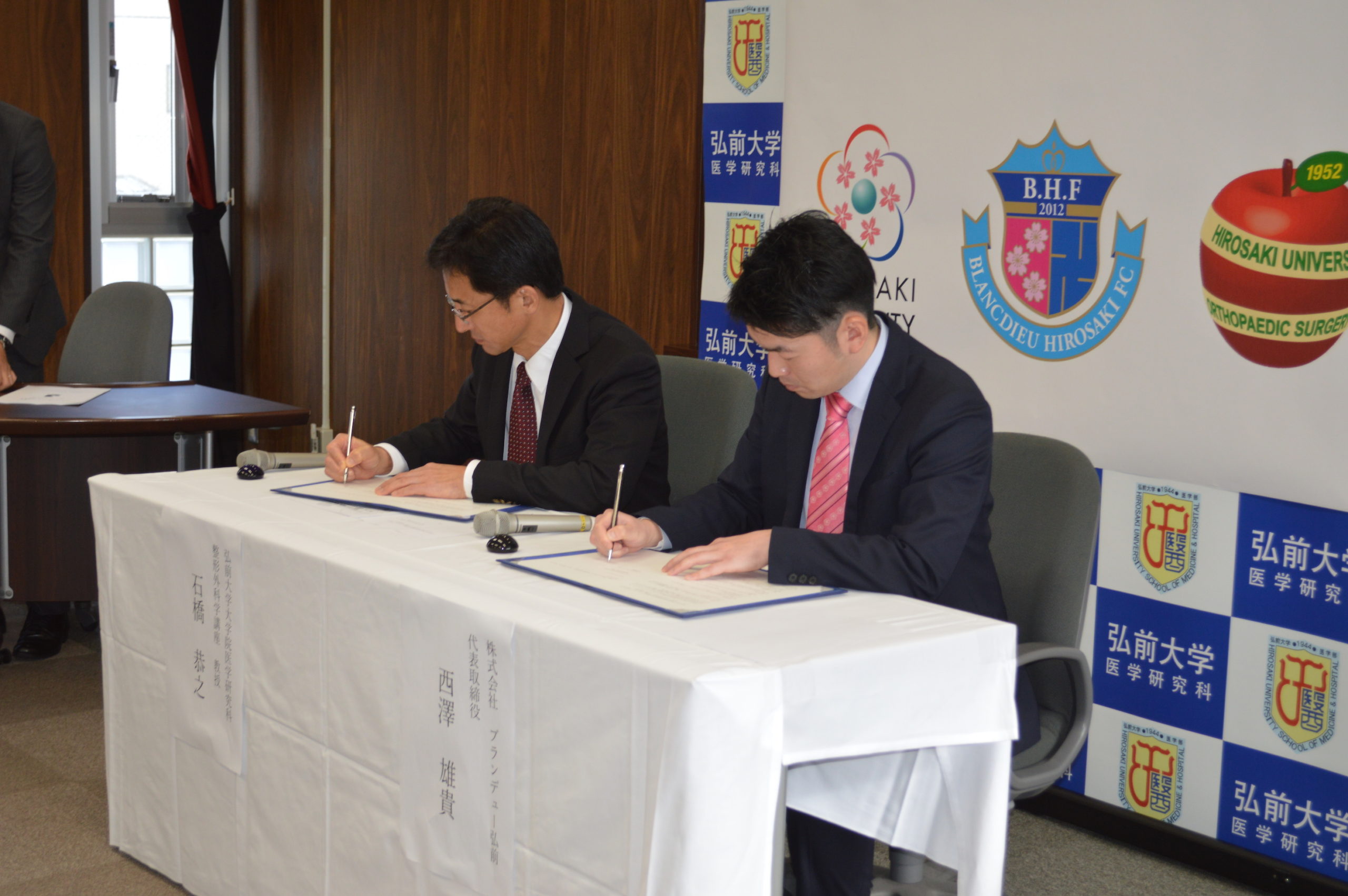 1月16日(木)に弘前大学大学院医学研究科整形外科学講座様とブランデュー弘前FCのスポーツメディカルサポート協定締結式が弘前大学にて行われました。