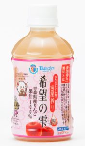 酸化防止に使われる酸化防止剤(ビタミンC)など添加物は一切使用しない、JAアオレン独自製法「密閉搾り」で搾りました。世界にも認められる青森県産りんごジュース「希望の雫」のブランデュー弘前FCデザインペットボトルです。売上の一部はブランデュー弘前FCの運営費に充てられます。