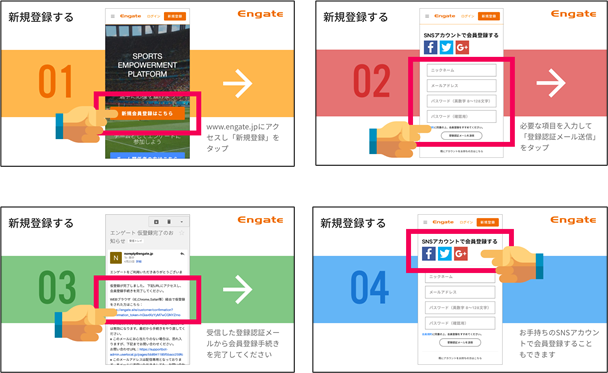 ギフティングは、エンゲートにご登録をしていただいているユーザー様のみ可能となっております。アカウントの作成方法については下記のとおりとなっております