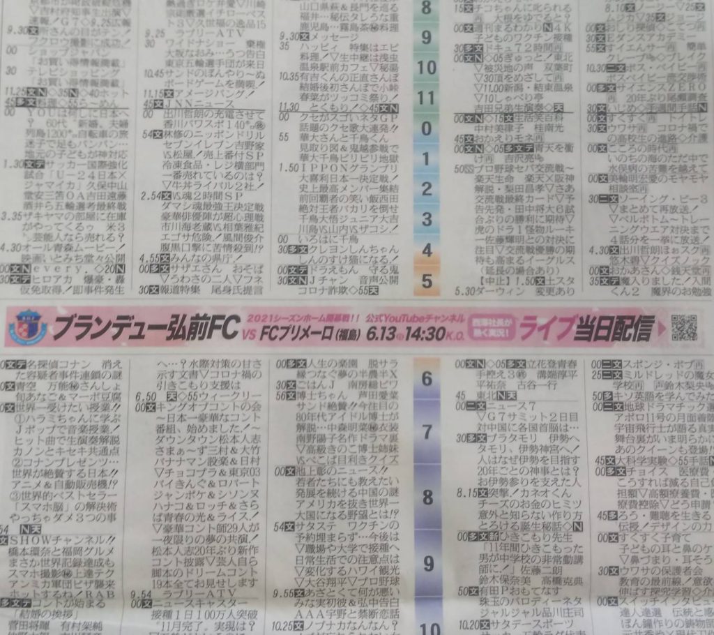 ブランデュー弘前FCでは、6月13日(日)に行われた試合の様子が青森テレビ(ATV)にて放送されますのでお知らせいたします。ぜひご覧ください。