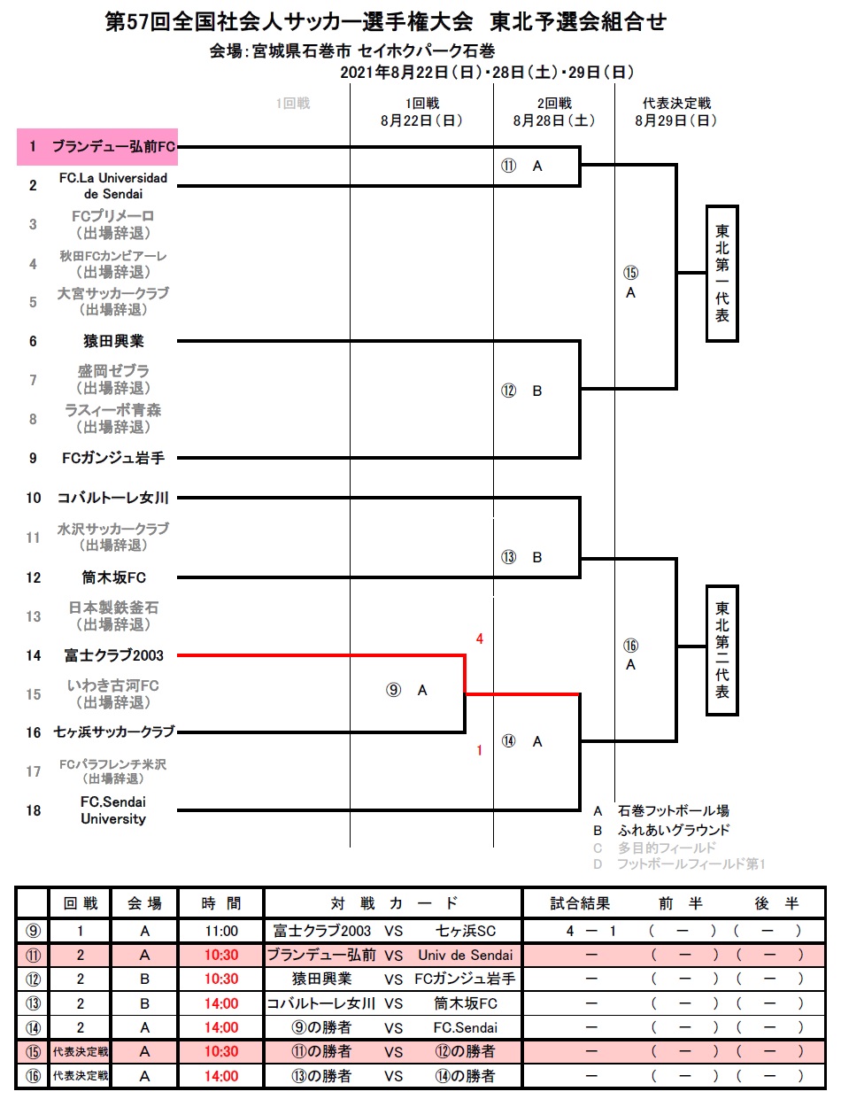 ブランデュー弘前FC vs (猿田興業 vs FCガンジュ岩手 の勝者)
