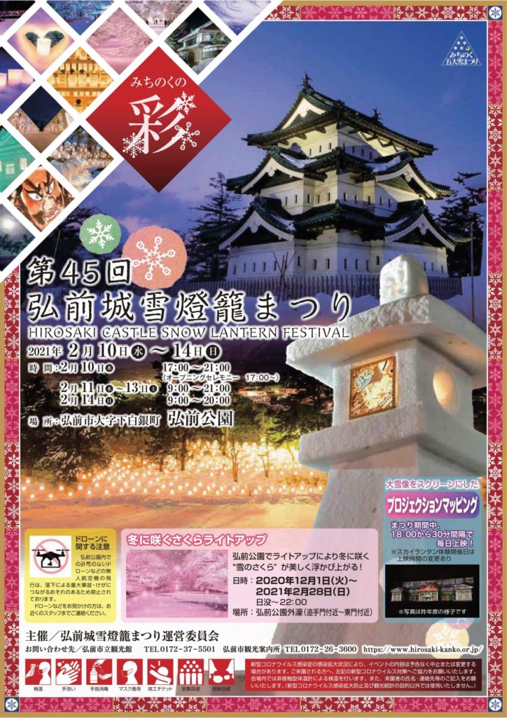 弘前城雪燈籠まつりについての詳細やご来場時の注意事項についてはこちらをご覧ください。