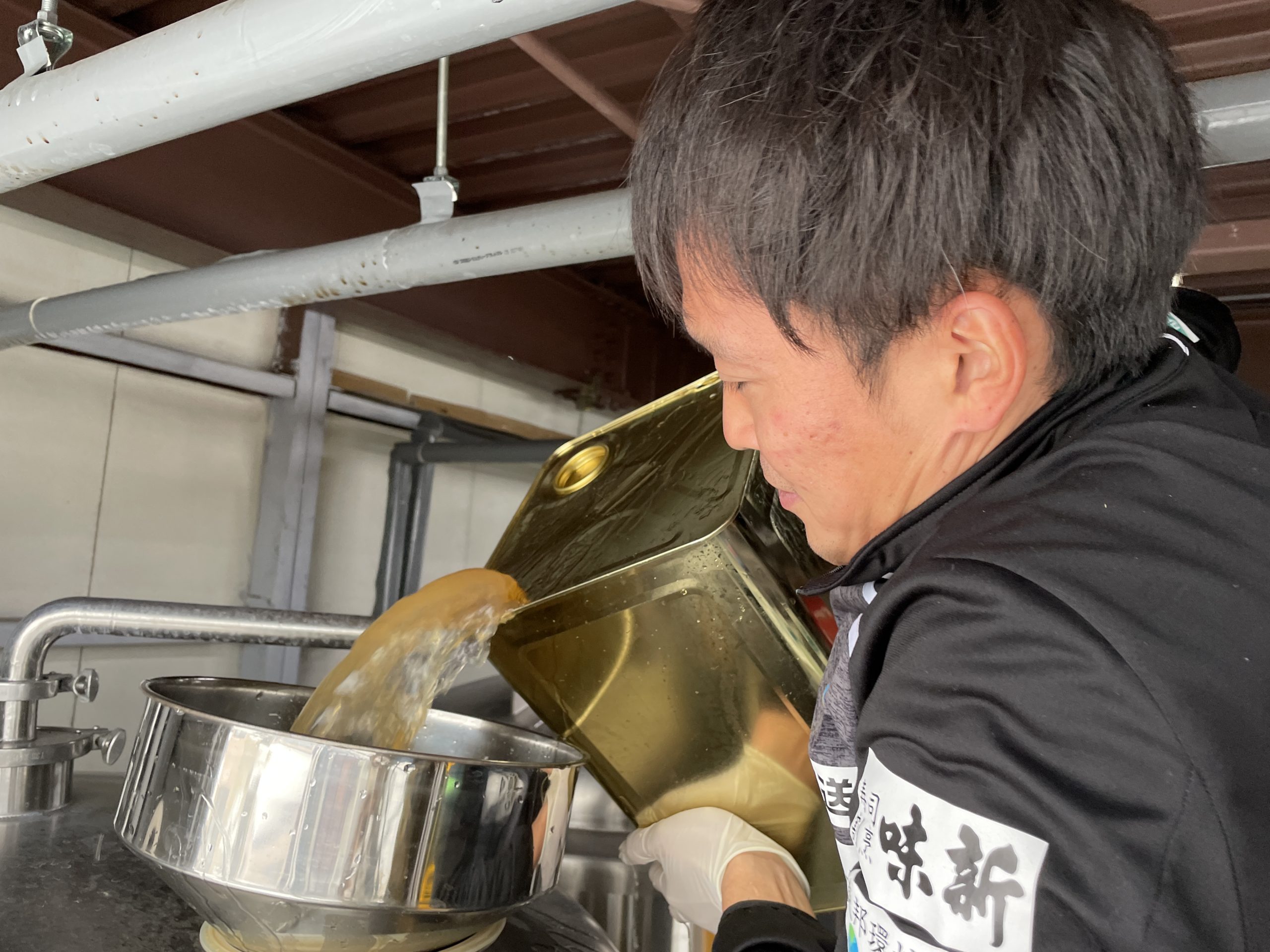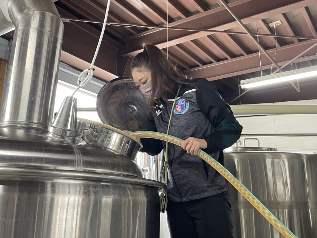 また、コラボ商品開発部長の成田 諒介選手とスタッフの工藤 安裕美がシードル造りの体験もさせていただきました!
