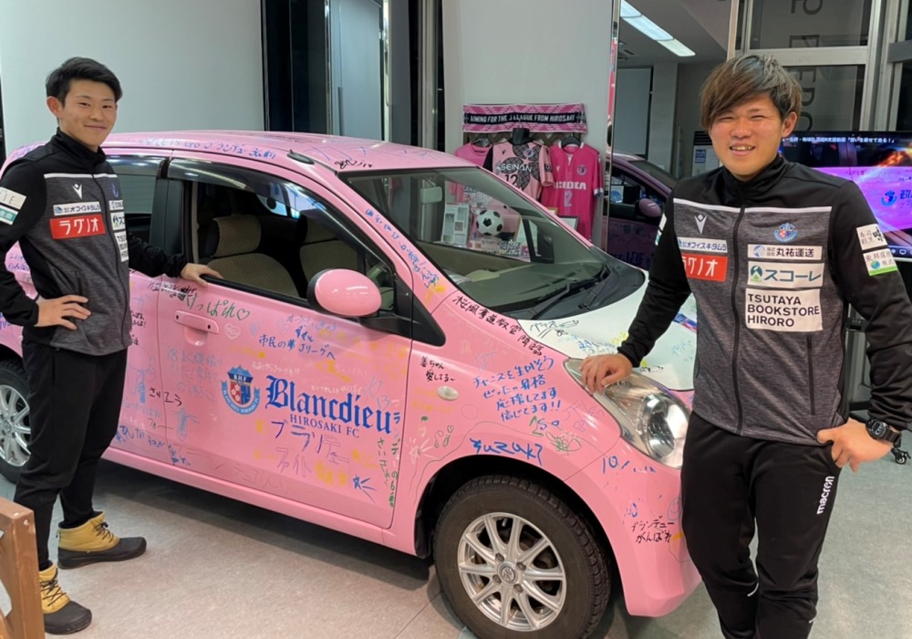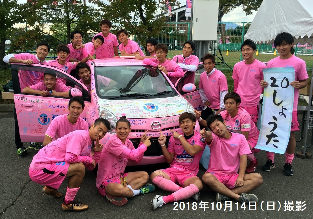車の提供・企画をしてくださった青森マツダ自動車㈱様は、このメッセージカーで函館市にて開催された地域CL2018にサポーターの皆様の想いを乗せて駆けつけていただき、地域CL初出場のブランデュー弘前FCを熱く後押しいただきました。