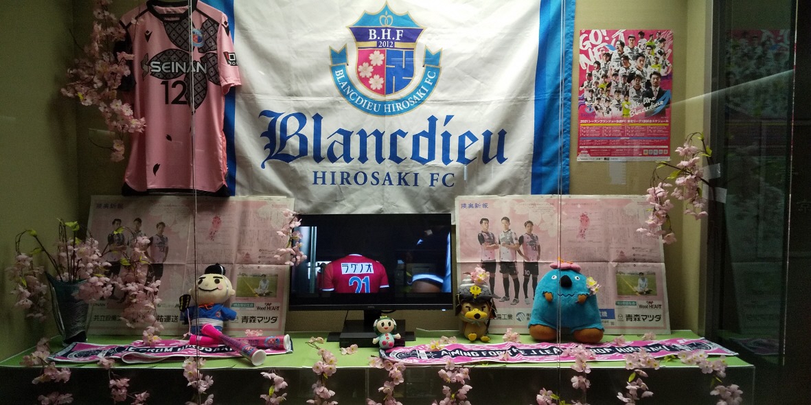 2022年の青森県展示スペースでは、ブランデュー弘前FCのPRをしていただける事になり、グッズやポスターなどを展示させていただきました。