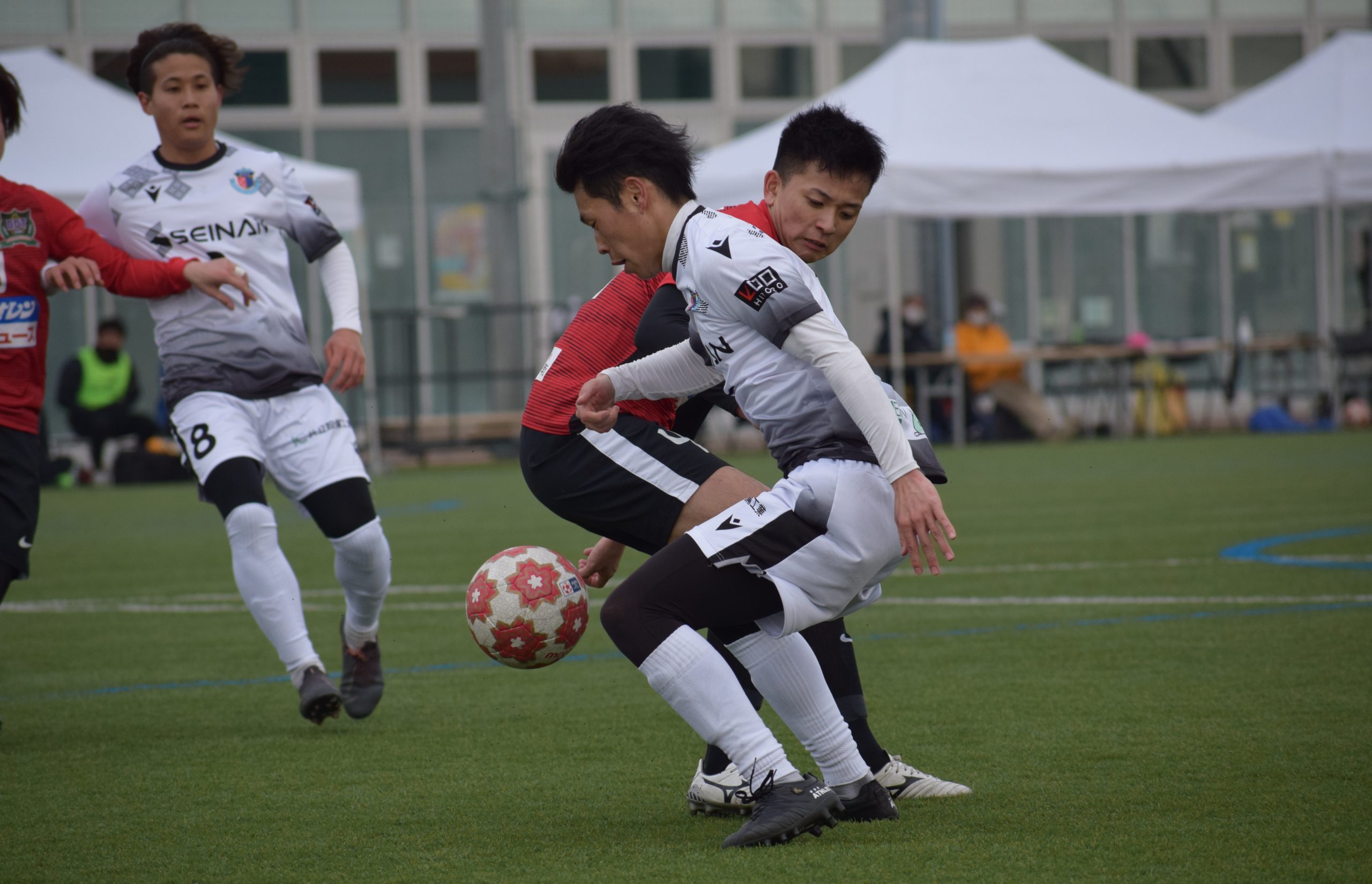 「今季からブランデュー弘前FCで指揮を執らせていただく大江と申します。今年は選手が27名。大卒選手が8名加入し、平均年齢が24歳、すごく若いチームになりました。我々は5月から東北社会人リーグが始まりますが、その前に既に天皇杯の青森県予選が始まっています。公式戦というのは雰囲気、空気、会場のにおいも含めて、良い緊張感の中で戦わせていただいています。もちろん、試合が終われば課題はたくさん出ます。その課題がトレーニングを充実したものにしてくれています。上手くいかない時もありますし、失敗もありますが、全員で矢印を同じ方向に向けて、立ち向かって成長できればと思います。サッカーの醍醐味は1つでも多くゴールを奪うこと。そのゴールを奪うために選手には1メートルでも多く走ってもらいますし、球際でも負けずにやってもらいますし、相手よりも早くボールに触って、ペナルティエリアにたくさんの選手が入っていけるように、日々努力しています。強く、速く、タフに、主導権を取れるサッカーを目指しています。ヘロヘロになりながらでも、チーム全員で勝ち点3をとれるようにやっていきます。半年後にリーグ優勝、その先にある地域CLをしっかり戦って、皆様に良い報告をすることをお約束します。」
