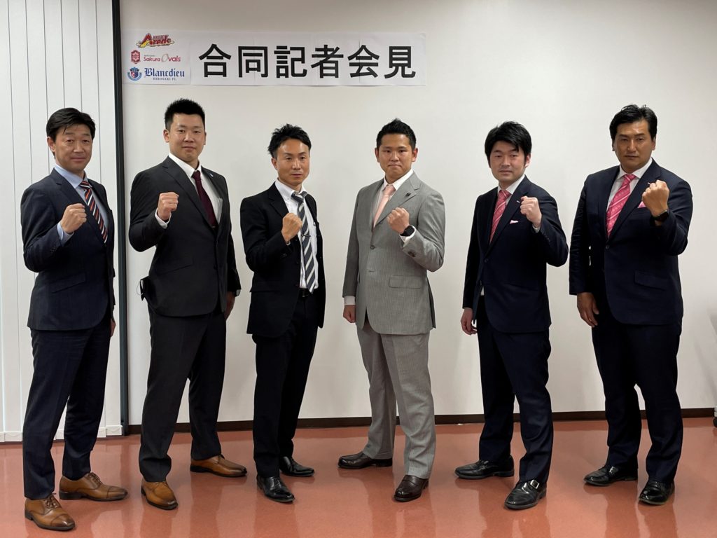 ブランデュー弘前FCでは、社会人野球クラブ「弘前アレッズ」・男女ラグビークラブ「弘前サクラオーバルズ」と、2022シーズンに向けた合同記者会見を実施しましたのでお知らせします。