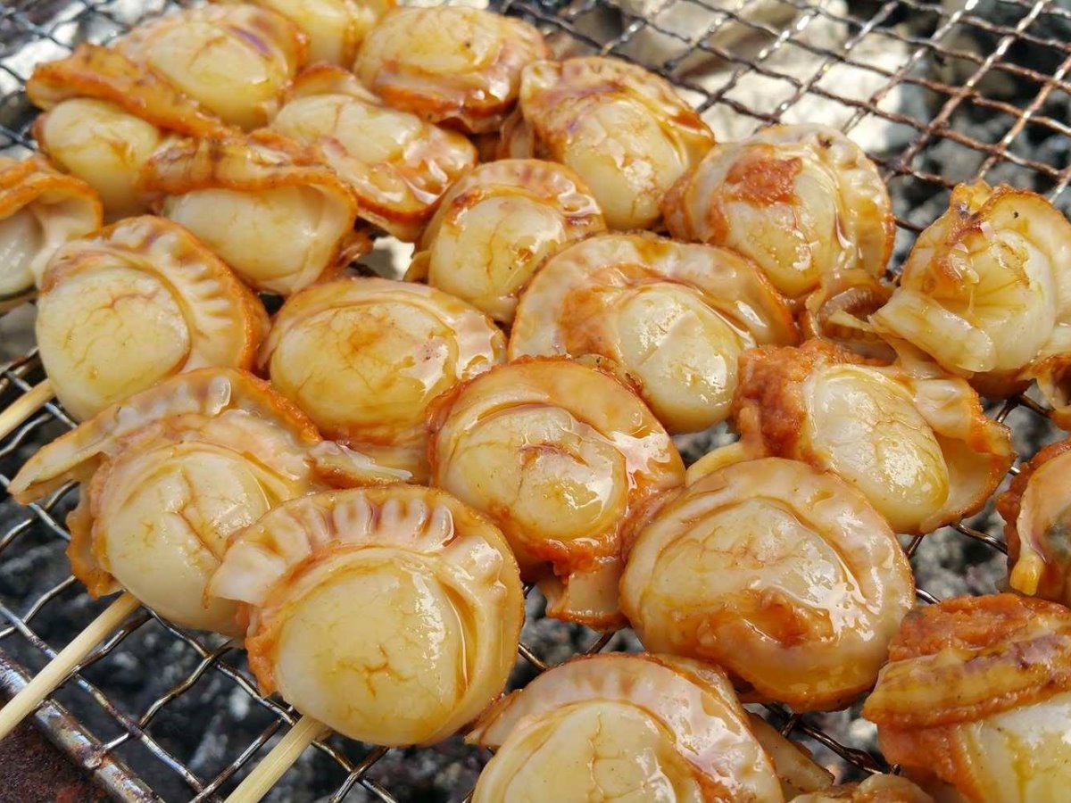 ▶活味屋 アップルパイ ¥200/ホタテ串焼き ¥500