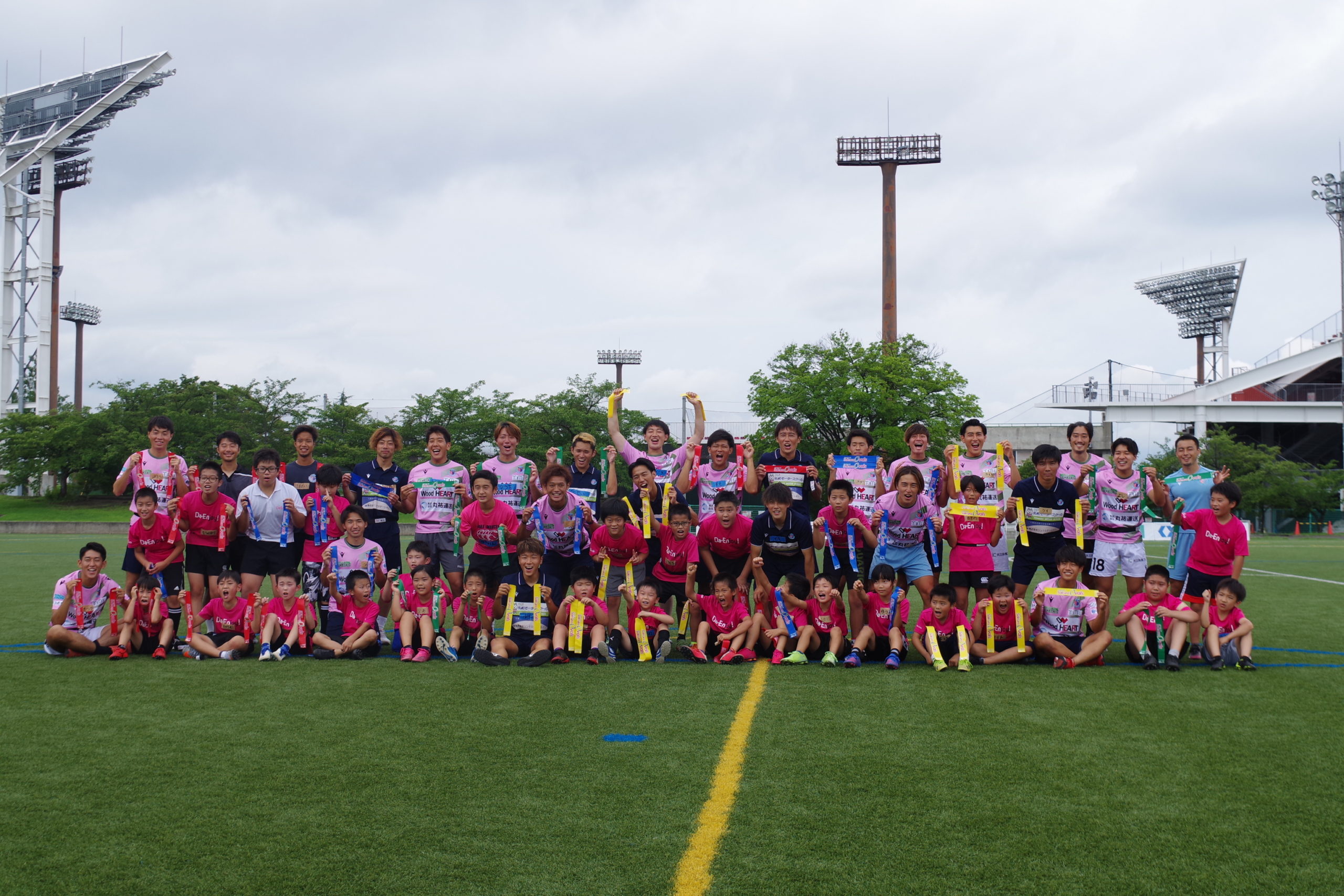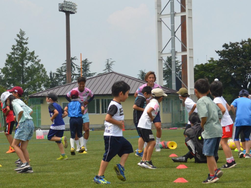 はじめての実施となった~未来世代の絆~ サッカー教室では、高木輝之選手・高橋佳選手・浅利航大選手・松山瑠偉選手が参加させていただきました。子どもたちは元気いっぱいにボールを追いかけ、楽しいサッカー教室となりました。