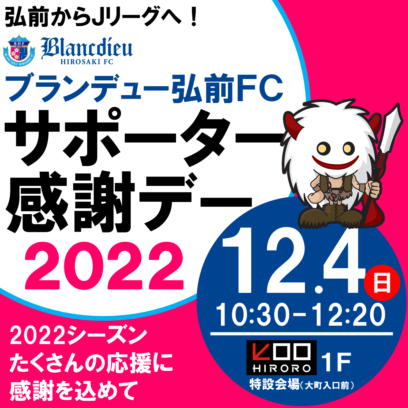 この度、ブランデュー弘前FCは皆様の応援に感謝を込めて「2022シーズン サポーター感謝デー」を開催することが決定しました。