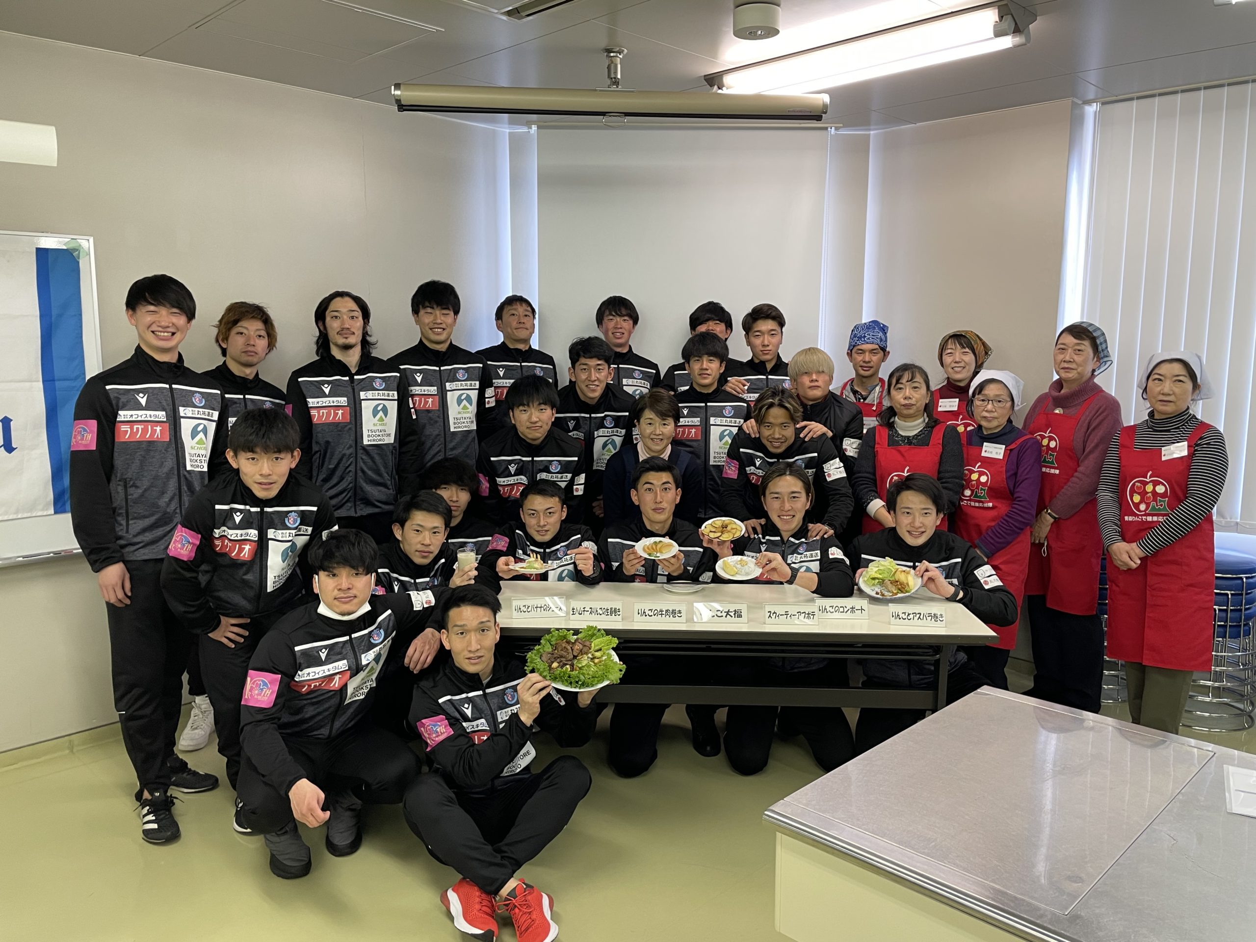 ブランデュー弘前 FC では、弘前市を中心として活動するサッカークラブとして、県民の健康づくりと県産果物の消費拡大に貢献したいとの思いから、青森県主催の青森りんごを始めとする果物の栄養・機能性等に関する知識を学ぶセミナー「アスリート向けの果物食べようセミナー」に参加しましたのでご報告いたします。