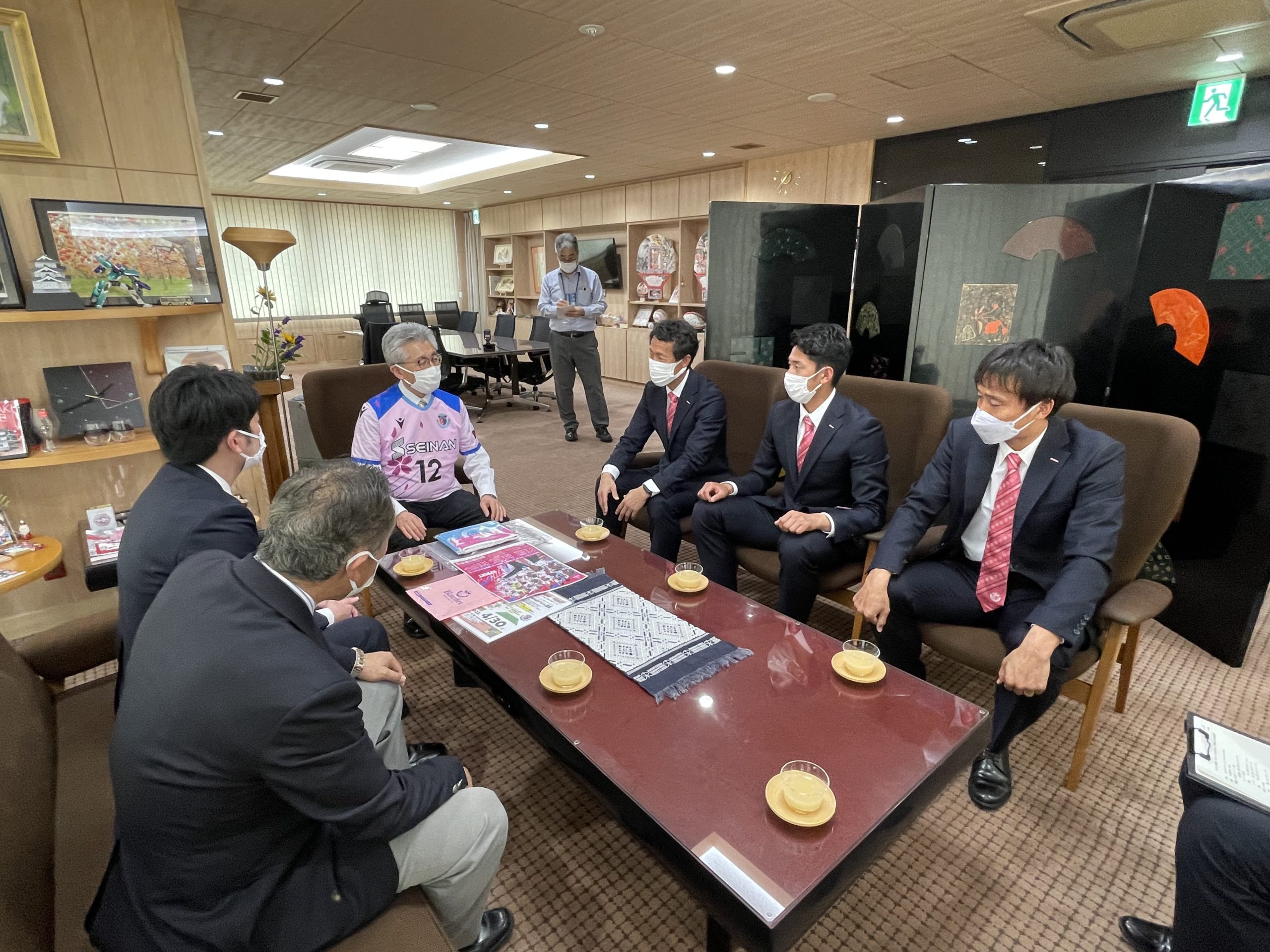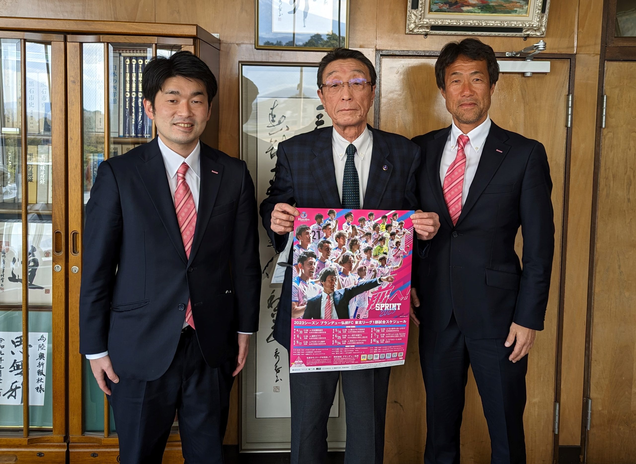 櫻田市長からは「JFLに昇格してください!」と温かい激励のお言葉いただき、強い決意のもとリーグ開幕への思いを新たにしました。
