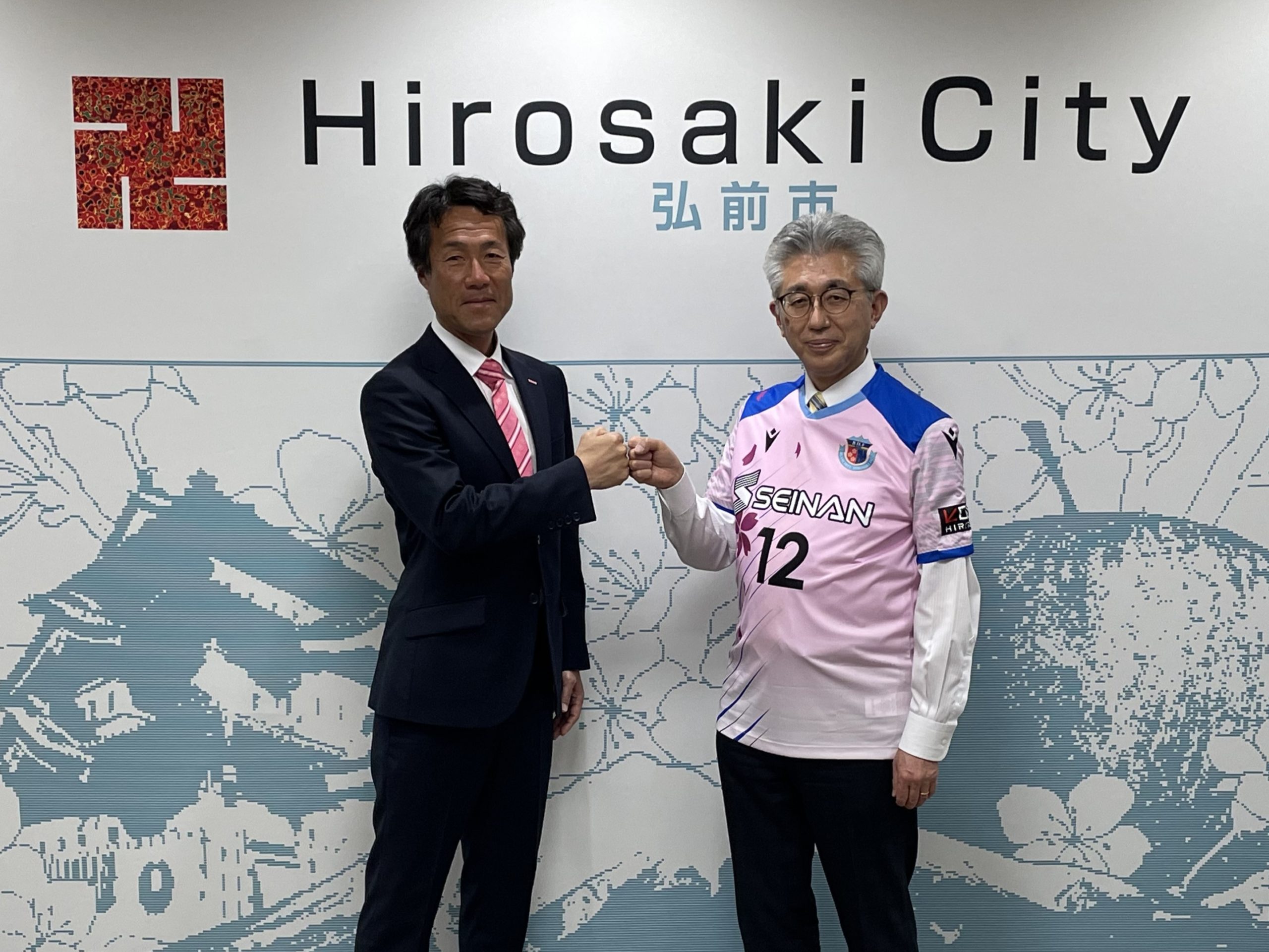 ブランデュー弘前FCでは、4月19日(水)、2023シーズン東北社会人リーグ開幕に向けての決意を表明するため、弘前市 櫻田 宏市長を表敬訪問いたしましたのでご報告いたします。