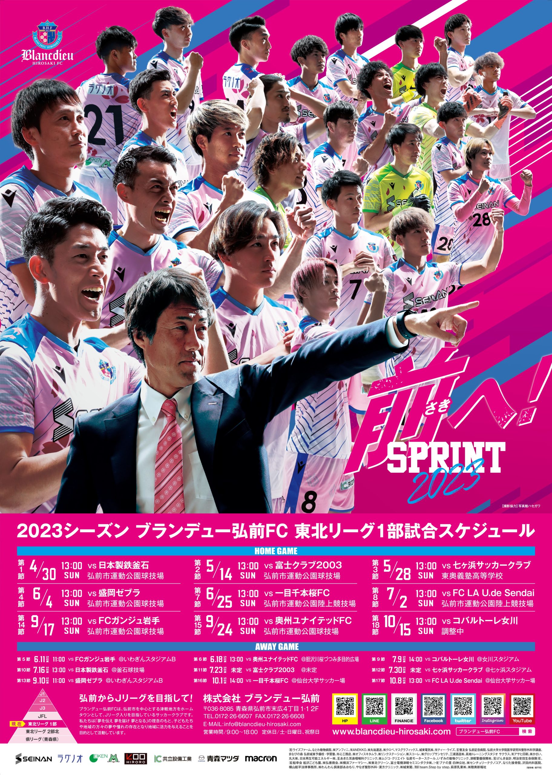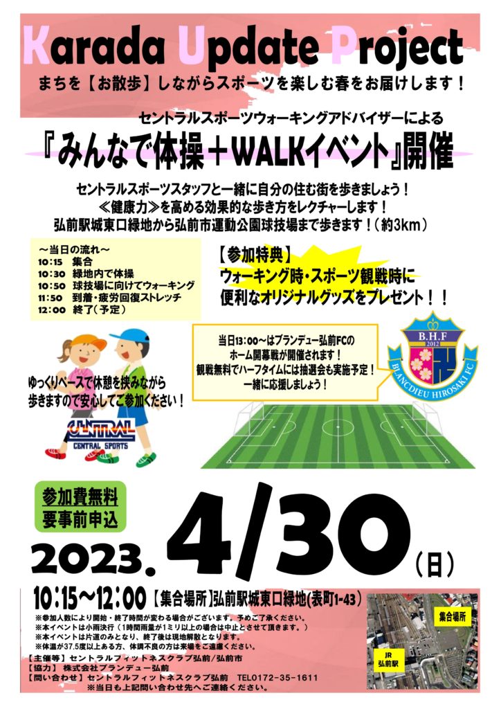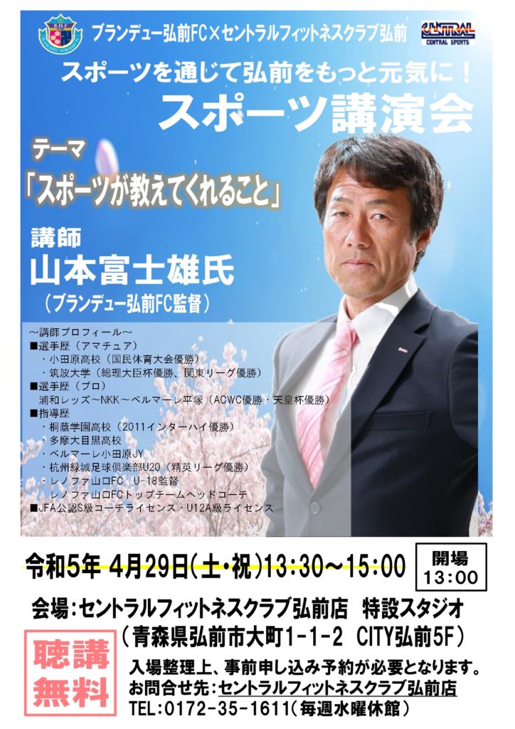15:30~16:30 ブランデュー弘前FC ホームゲーム 無料サッカー教室開催