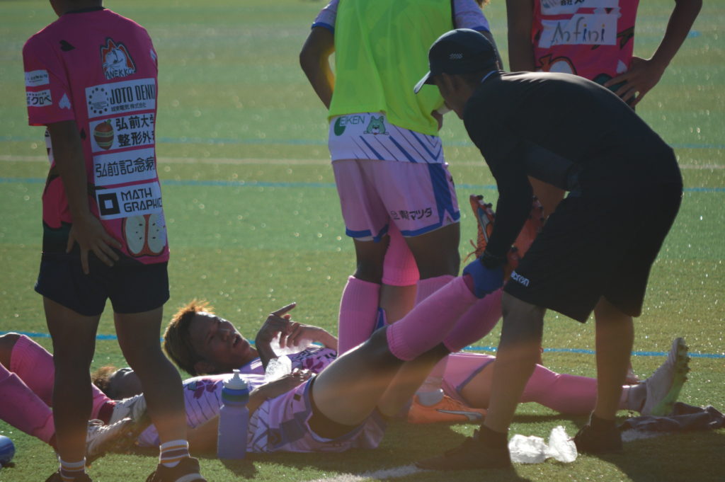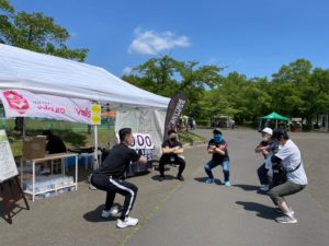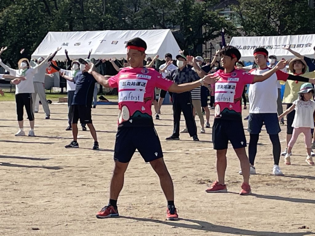 ブランデュー弘前FCからは、松山 瑠偉選手・宮阪 淳也選手・繁田 康平選手・小野 春輝選手が参加し、キヤノンプレシジョンの皆様に地元弘前のサッカーチーム「ブランデュー弘前FC」を知っていただくきっかけ作りとして、グッズ販売ならびにPR活動をさせていただきました。