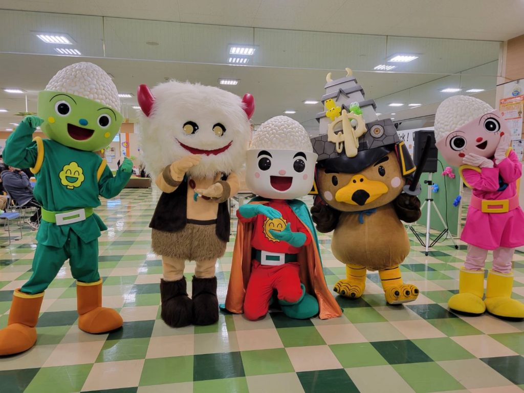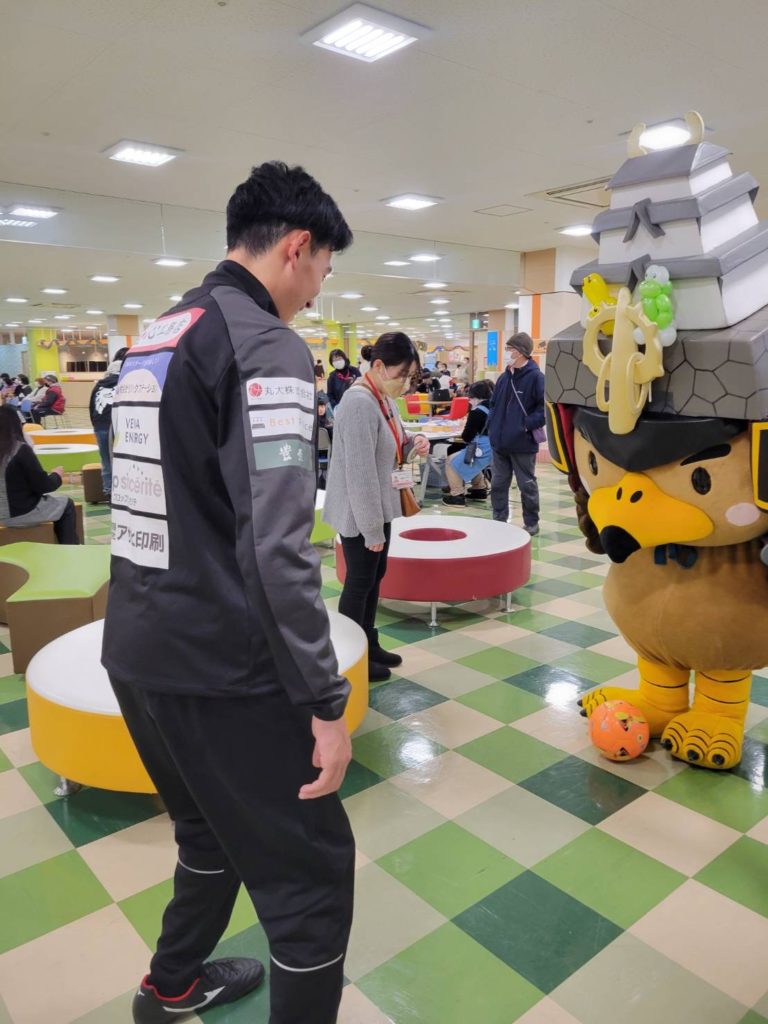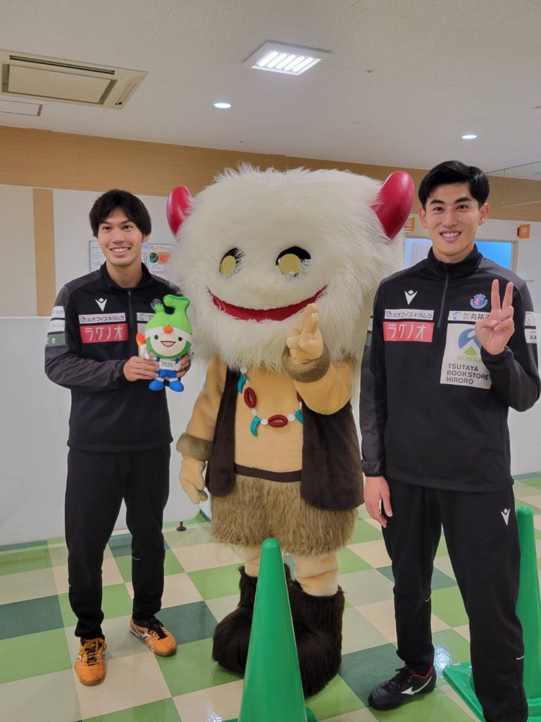 また、イベントには「たか丸くん」と青森米の応援キャラクター「お米大使ピカピカ」「アオちゃん」「モリくん」も参加し、ブラッフェはたか丸くんとサッカーをしたり、お米大使のみんなとおにぎりポーズで写真撮影をして楽しい時間を過ごすことができました!