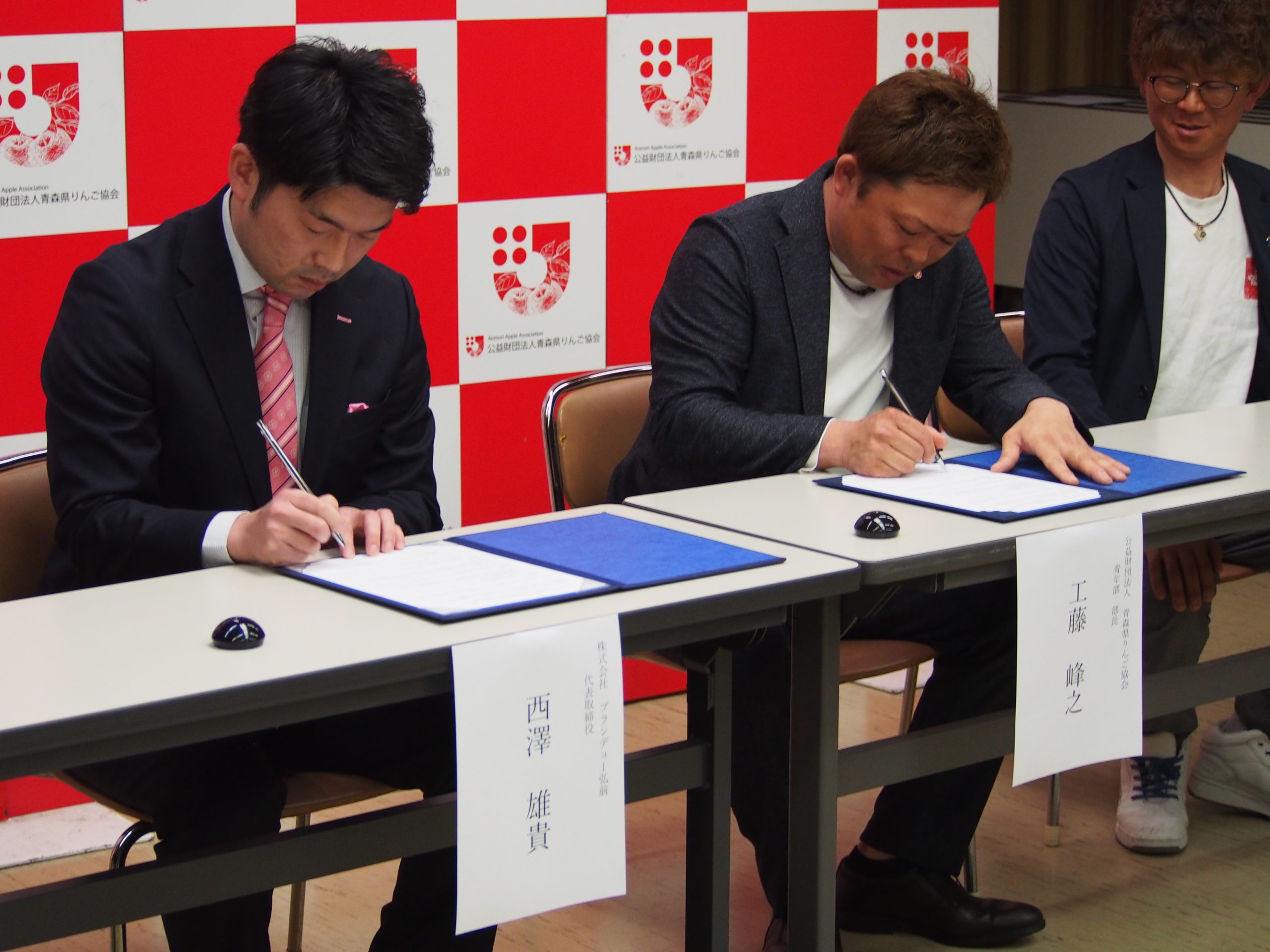 今回の協定締結は、公益財団法人青森県りんご協会青年部と株式会社ブランデュー弘前が、りんごとスポーツを軸とした地域活性化やまちづくりを行うためにの緊密な協力関係を築き、持続・発展的に連携を深めることを目的とし連携締結することとなりました。