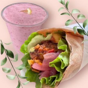 ▶笑顔のキッチンカー muskaan チャパティロール(チキン・エビ・豆・アップルキャロット)¥600/ラッシー(マンゴー・ブルーベリー・ストロベリー・プレーン・アップルシナモン)¥400