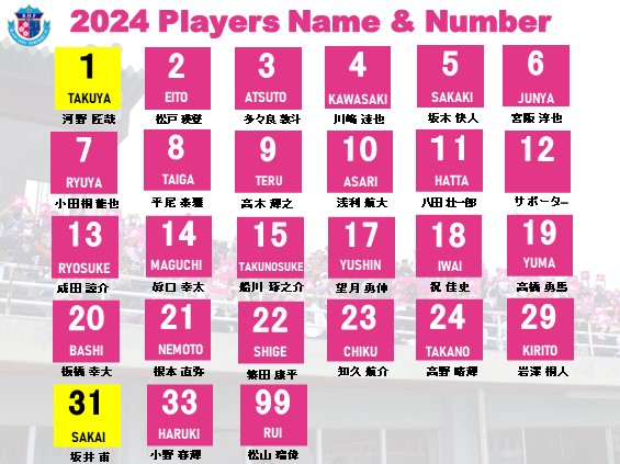 2024シーズン選手背番号・ネームは下記をご覧ください。