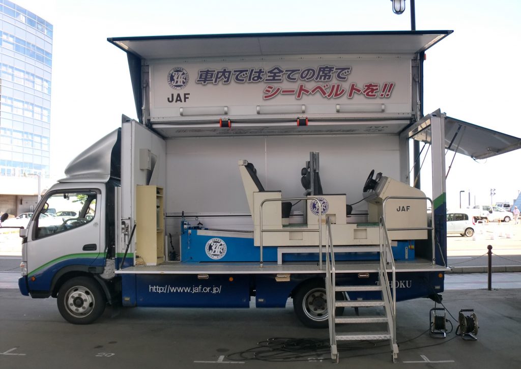 子ども免許証が作成できるコーナーと衝突体験でシートベルトの重要性を学ぶシートベルトコンビンサーが登場!