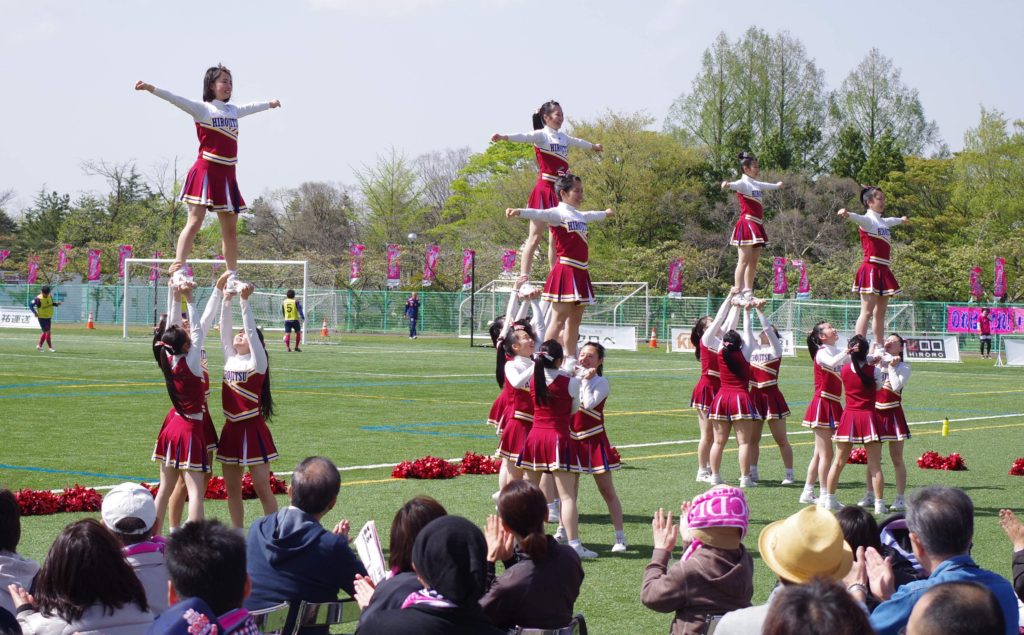 スポネット弘前のキッズチアダンスチーム「JUMPING☆POMMES」と「弘前実業高校応援団」がブランデュー弘前FCに熱いエールを送ります!