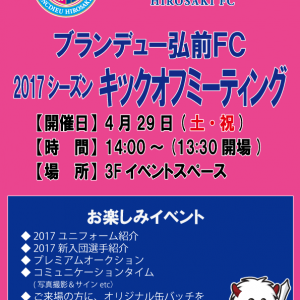 2017ブランデュー弘前FCキックオフミーティングイベント情報更新のお知らせ