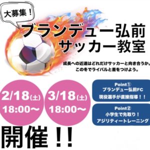 2/18・3/18「ブランデュー弘前 サッカー教室」参加者募集のお知らせ