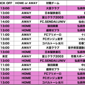 ブランデュー弘前FC「2020東北社会人サッカーリーグ1部」試合日程決定のお知らせ