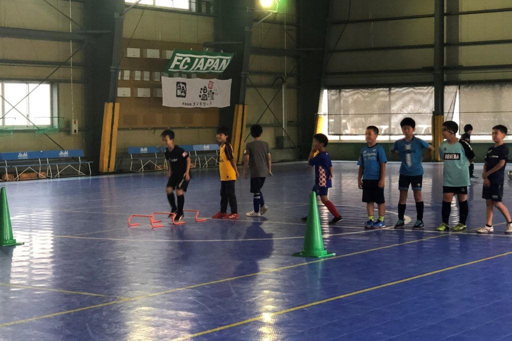 姜コーチテルコーチと小学4年生から6年生までの13名が一緒にシュート練習などの基礎トレーニングを実施しました。