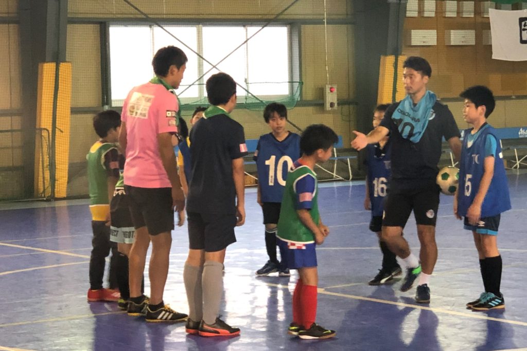 最後のミニゲームでは弘前市出身の成田諒介選手が飛び入り参加して3チームで楽しくチームの勝利を目指しました。
