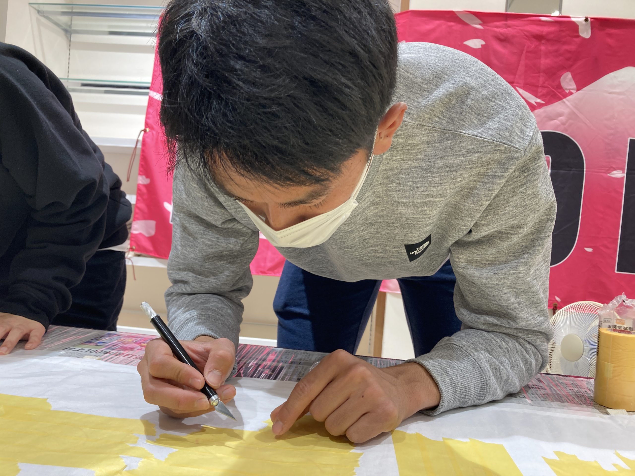 前日には、サポーターの方と川﨑 達也選手・笠原 啓夢選手・宮阪 淳也選手でマスキング作業を行いました。