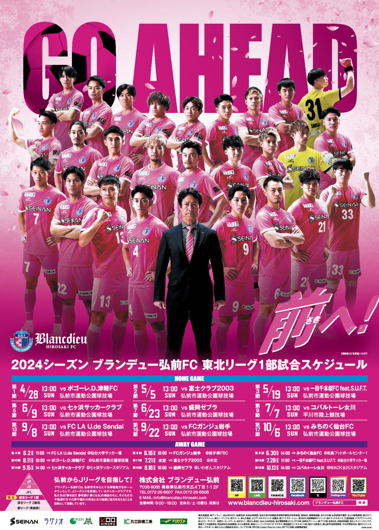 ブランデュー弘前FCでは、2024シーズンのスケジュールポスターが完成いたしましたのでお知らせします。