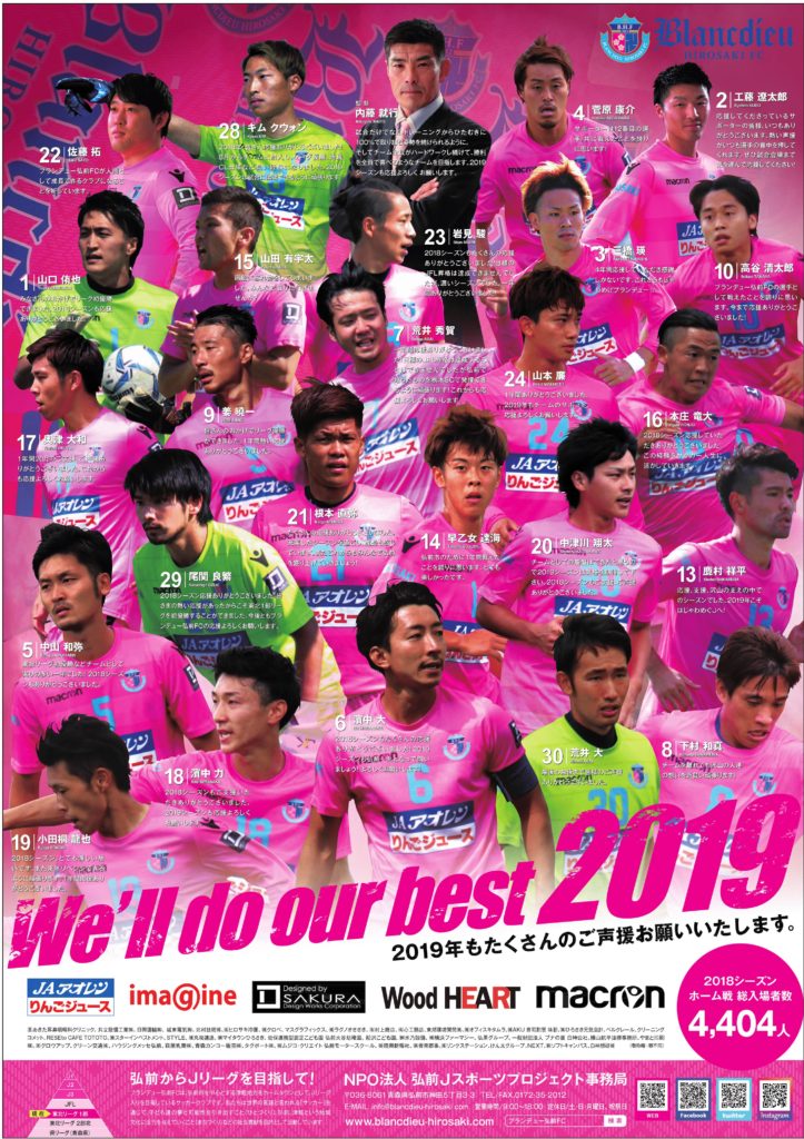 ブランデュー弘前FCでは、2019シーズンも多くの方に応援をしていただきたいという想いを込めて、「2019シーズン応援よろしくお願いしますポスター」を作製いたしましたので、お知らせいたします。