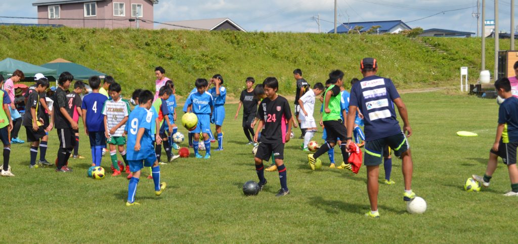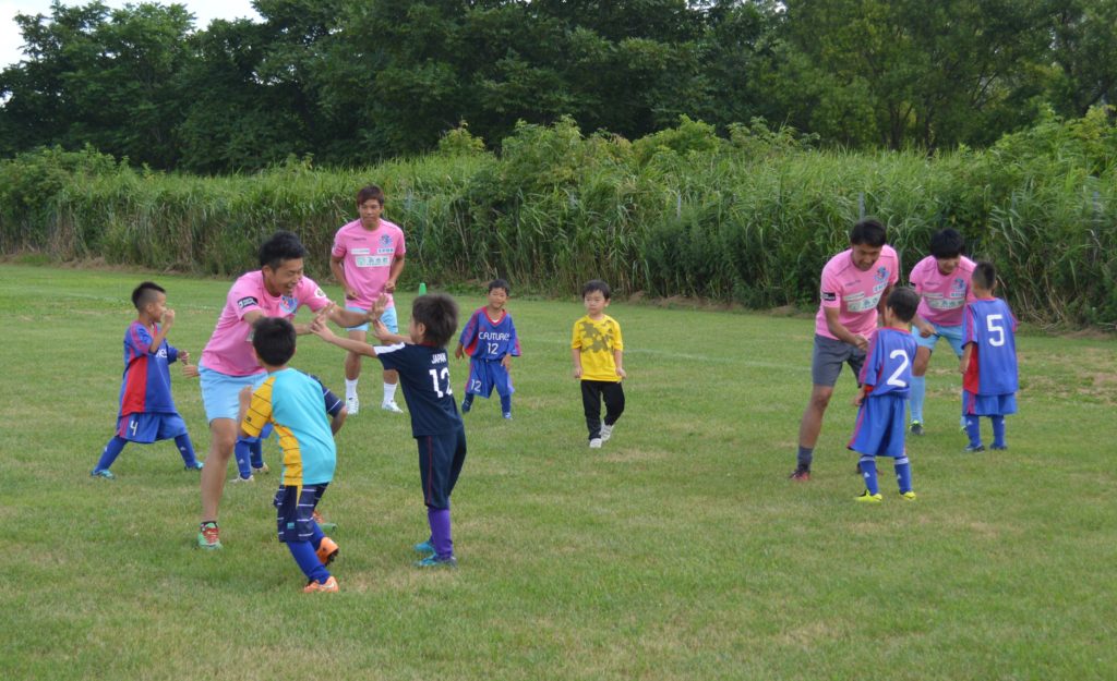 内藤監督とトップチーム選手9名が五所川原周辺の4種チームに所属する選手を対象にサッカークリニックを行い、77名の選手に参加していただきました!