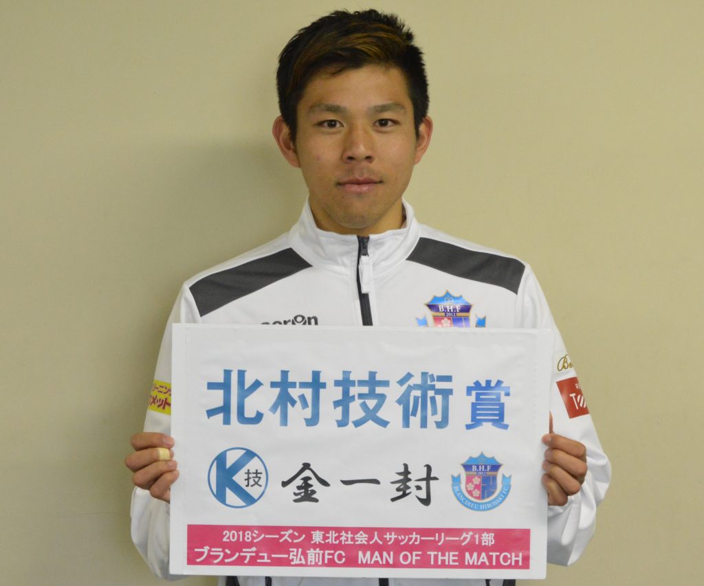 2018シーズン 東北社会人サッカーリーグ1部の試合でブランデュー弘前FCが勝利した場合に、その試合で最も活躍した選手に、ブランデュー弘前FCのオフィシャルスポンサー「北村技術株式会社」様より金一封が贈られます。北村技術様、ありがとうございます!