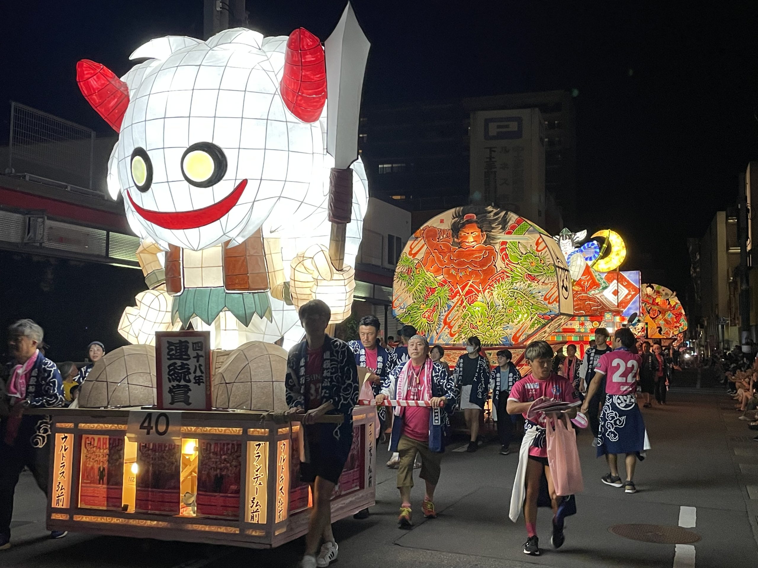 今年も「Hissatsuねぷた人」に参加させていただき、ブラッフェねぷたの運行と桜援うちわを配布させていただきました。