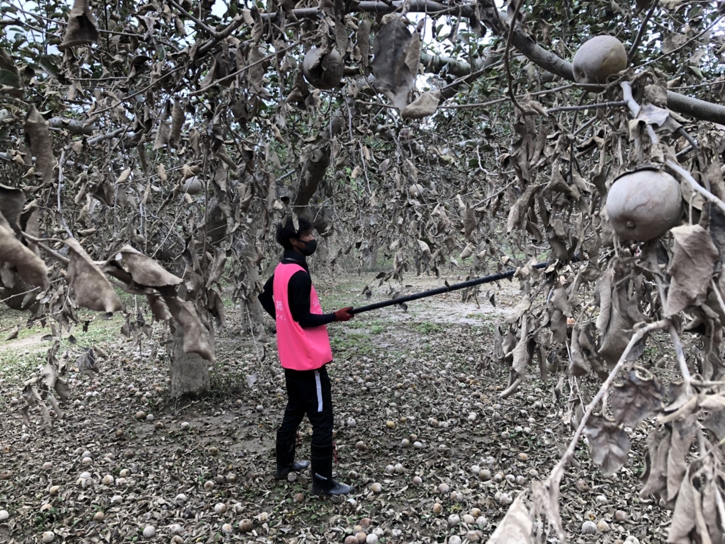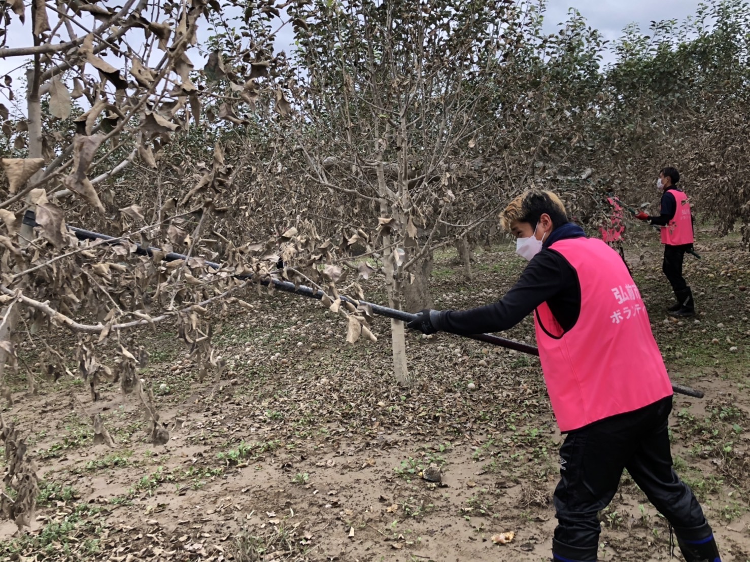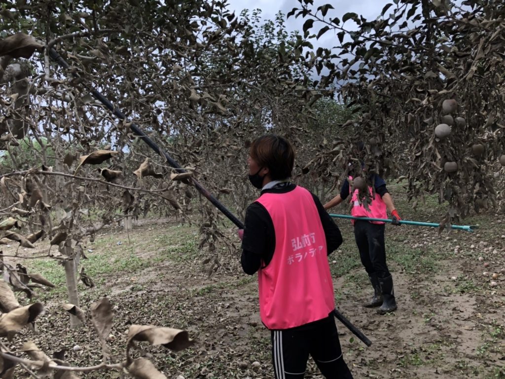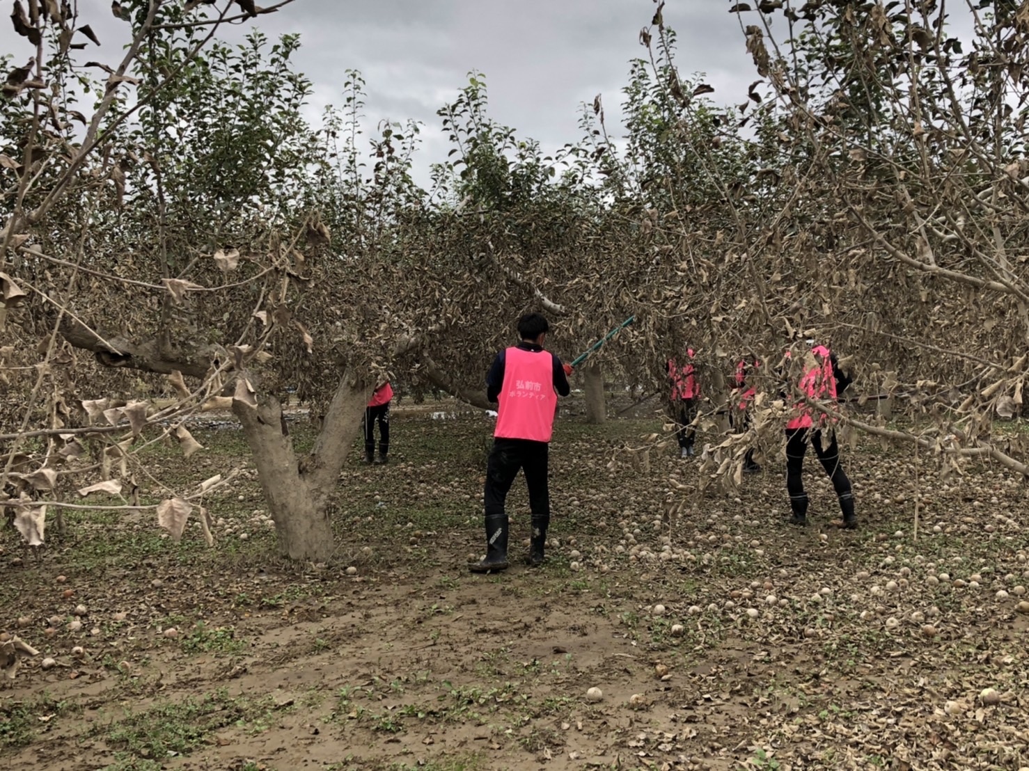 聖愛野球部が弘前の被災リンゴ園で復旧に汗