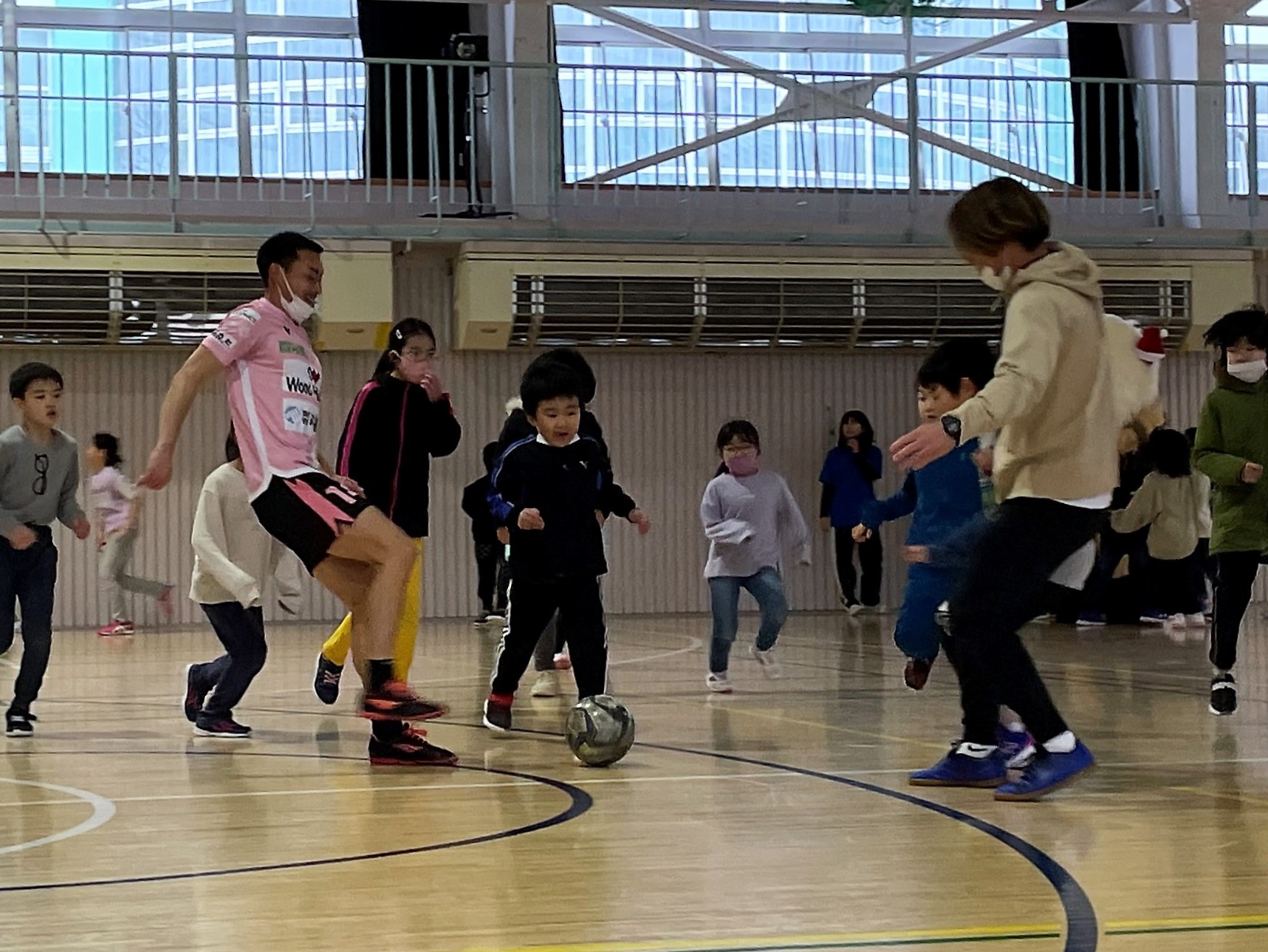 クリスマス会には約55人の子供たちが参加し、サプライズゲストとして登場した選手とブラッフェに大喜び!